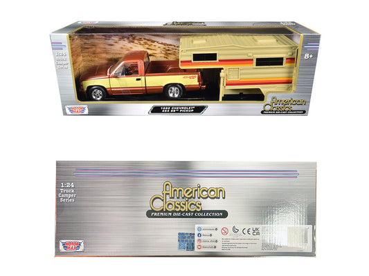 1992 Chevrolet 454 SS Pickup Truck Copper Metallic with Beige Sides with Camper Shell "American Classics" Series 1/24 Diecast Model Car by Motormax