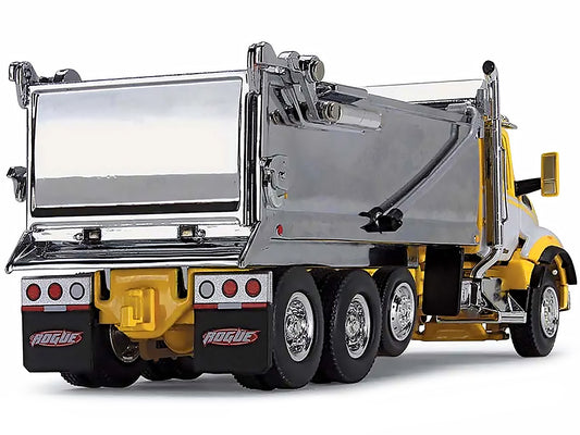 Kenworth T880 Day Cab with Rogue Transfer Dump Body Truck Yellow with White and Chrome 1/64 Diecast Model by DCP/First Gear