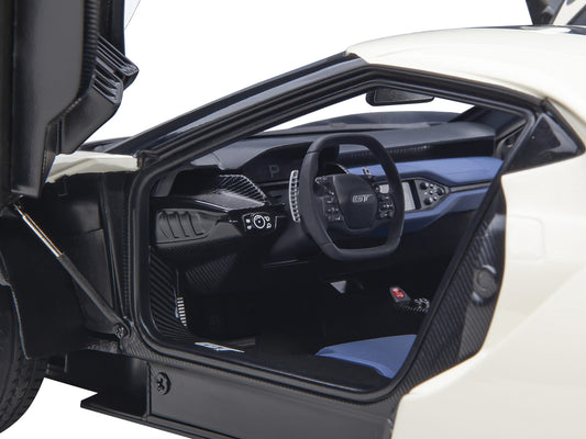 Ford GT Heritage Edition Prototype Wimbledon White with Antimatter Blue Hood and Stripe 1/18 Model Car by Autoart