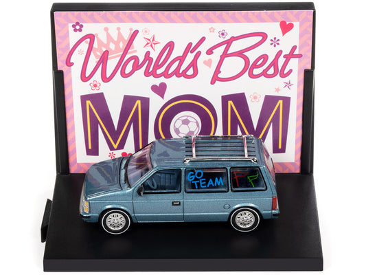 2018 Ford F-150 Pickup Truck Red and 1984 Dodge Caravan Minivan Blue Metallic "World's Best Mom and Dad" Set of 2 Pieces 1/64 Diecast Model Cars by Auto World
