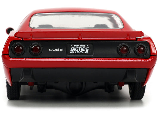 1973 Plymouth Barracuda Red with Black Stripes "Bigtime Muscle" Series 1/24 Diecast Model Car by Jada