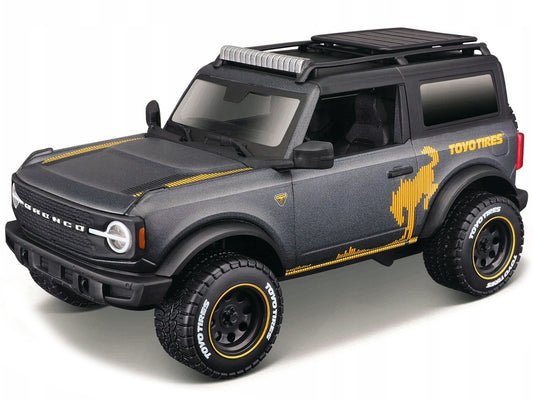 2021 Ford Bronco Badlands Dark Gray Metallic with Gold Graphics and Roof Rack "Off-Road" "Maisto Design" Series 1/24 Diecast Model Car by Maisto