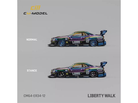 Nissan Skyline LB-ER34 "Super Silhouette" RHD (Right Hand Drive) #5 Chameleon Metallic with Extra Wheels 1/64 Diecast Model Car by CM Model