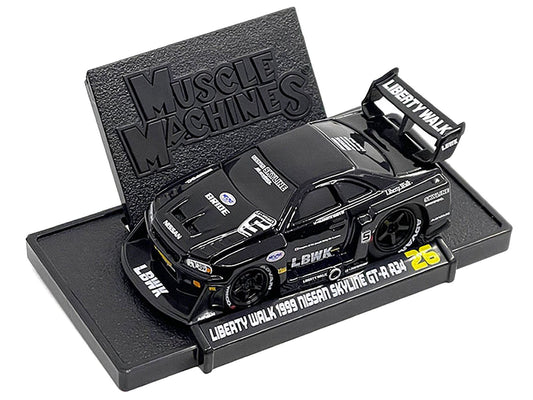 1999 Nissan Skyline GT-R (R34) #5 "Liberty Walk" Black 1/64 Diecast Model Car by Muscle Machines