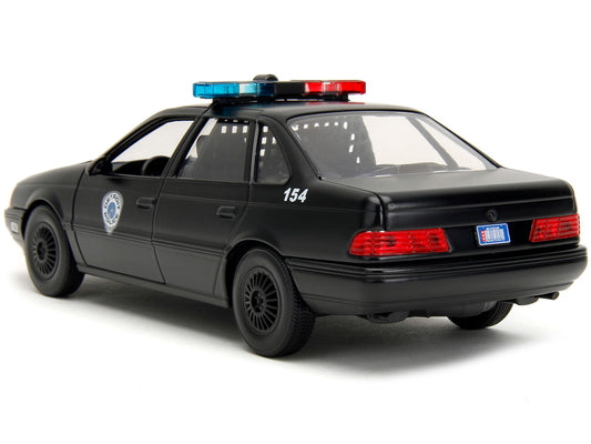 Ford Taurus OCP Matt Black "Detroit Police" and Robocop Diecast Figure 35th Anniversary "Robocop" (1987) Movie "Hollywood Rides" Series 1/24 Diecast Model Car by Jada