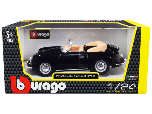 1961 Porsche 356 B Cabriolet Black 1/24 Diecast Model Car by Bburago