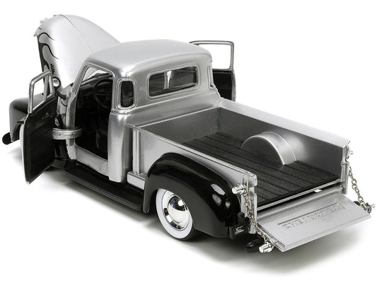1953 Chevrolet 3100 Pickup Truck Silver Metallic with Black Flames with Extra Wheels "Just Trucks" Series 1/24 Diecast Model Car by Jada
