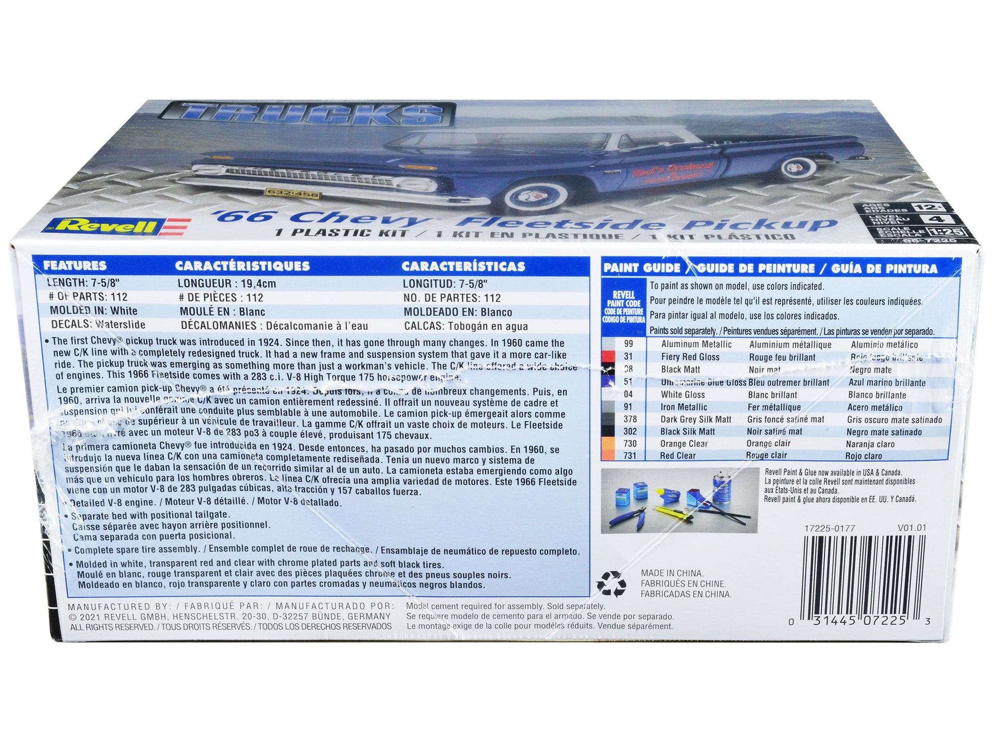 - Brand new plastic model kit of 1966 Chevrolet Fleetside Pickup Truck (Level 4) 1/25 plastic model kit by Revell.
